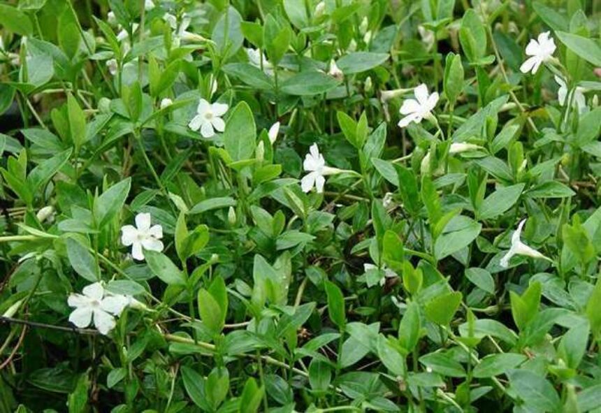 Vinca minor "Alba", in het nederlands "kleine witte maagdenpalm" genaamd is een halfheester, vaak ook als vaste plant gerangschikt. Het is een laagblijvende, bodembedekkende wintergroene plant met kleine, elliptische en glanzende bladeren. De plant heeft donkergroene blaadjes en vijftallige stervormige helderwitte bloempjes. De hoofdbloei ligt in april en mei. Deze vinca minor is zeer goed winterhard en verlangt een standplaats in volle zon, halfschaduw of zelfs schaduw. Deze vinca is zeer flexibel wat de grondsoort betreft en verdraagt in tegenstelling tot vinca difformis ook een droge bodem. Hij is goed zeewind tolerant, verdraagt luchtverontreiniging en droogte .