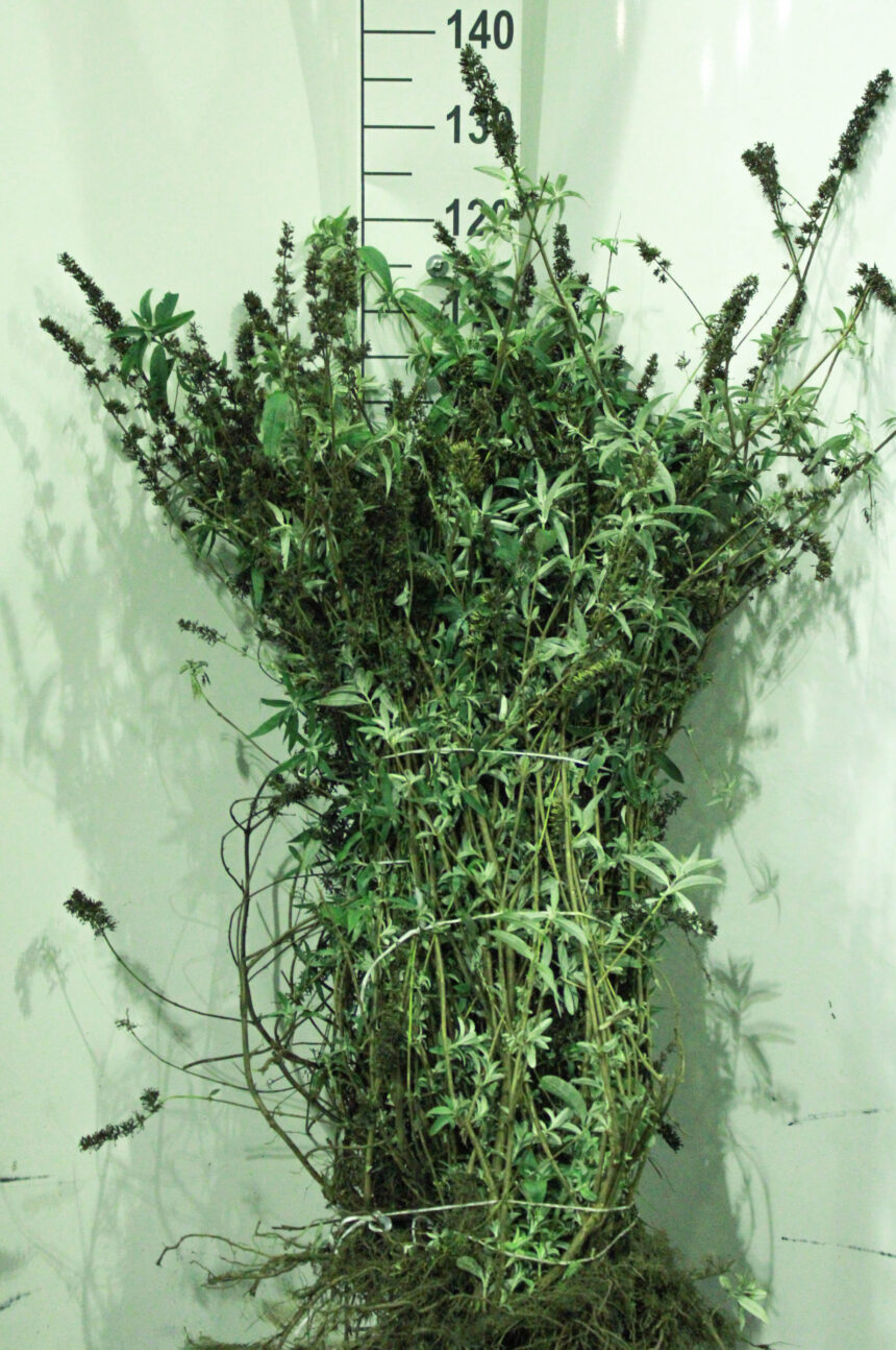 Buddleja davidii 'empire blue', middelgrote, rijkbloeiende en bladverliezende vlinderstruik met hangende takken, lange puntige donkergroene bladeren en wollig witte onderzijde. De maximale hoogte en breedte bedraagt tussen de 2 en de 3 meter. Bloeiwijze: grote lilablauwe, violetblauwe bloempluimen. Deze buddleja houdt van droge niet te rijke grond, alle grondsoorten worden getolereerd van zuur tot kalkrijk. Kort terugsnoeien in het voorjaar, na de vorstperiode. Deze buddleja is ook zeewind tolerant en bestand tegen luchtvervuiling wat hem interessant maakt voor toepassing in een stedelijke omgeving.