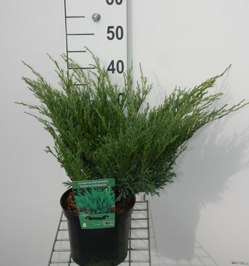 Juniperus horizontalis 'Andorra Compact', syn 'plumosa compacta', in het nederlands kruipende jeneverbes genaamd, is een kleine groenblijvende dwergconifeer met een bossige, laagblijvende, kussenvormige habitus. De kleine bladeren zijn blauwgroen, zacht en schubvormig. Ze kleuren in de winter decoratief paarsbrons. Juniperus horizontalis 'Andorra Compact' houdt van een standplaats in de volle zon en een goed doorlaatbare bodem. Deze juniperus is zeer goed winterhard, redelijk droogtetolerant, verdraagt zeewind en luchtvervuiling, is redelijk ziekteresistent maar wordt soms geplaagd door de jeneverbesschildluis en rupsen.