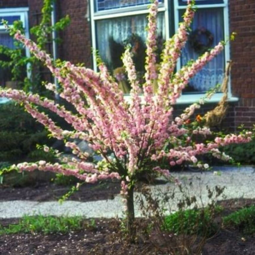 Prunus triloba in het nederlands ook wel amandelboompje genoemd is een kleine boom met eerst een slanke en smalle opgaande vorm en later een vaasvormige habitus. De bladeren zijn omgekeerd eivormig, getand, drielobbig, middengroen van kleur in lente en zomer en geel tot bronskleurig in de herfst. De dubbele bloemen zijn lichtroze gekleurd en licht geurend. Deze prunus houdt van een niet té kalkrijke, liefst licht zure, goed doorlatende grond en een standplaats in volle zon, hij is zeer goed winterhard, behoeft weinig snoei en produceert kleine eetbare donzige vruchtjes.