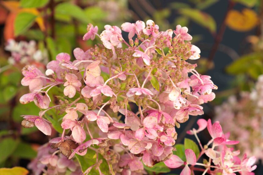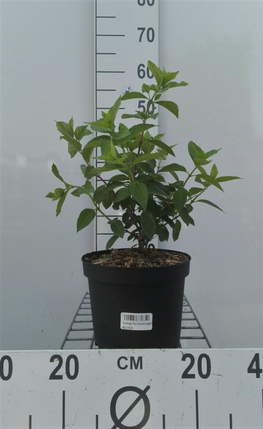 Hydrangea paniculata 'diamond rouge® , is een opgaande pluimhortensia die bloeit van juli tot september met witte bloempluimen die later roze tot rozerode uitbloeien. De bladeren zijn smal eivormig, donkergroen, getand en aan de onderkant grijsgroen . Deze pluimhortensia houdt van een standplaats in volle zon of gefilterd zonlicht . Hij bloeit bovendien op éénjarig hout en kan in het vroege voorjaar stevig teruggesnoeid worden om een bossige vorm te behouden. Hij staat bij voorkeur in een lichtzure vochtige grond , is bijzonder winterhard , lokt vlinders en bijen. Is ook in de herfst decoratief en kan ook aan de kust geplant worden, want hij is goed zeewind tolerant.