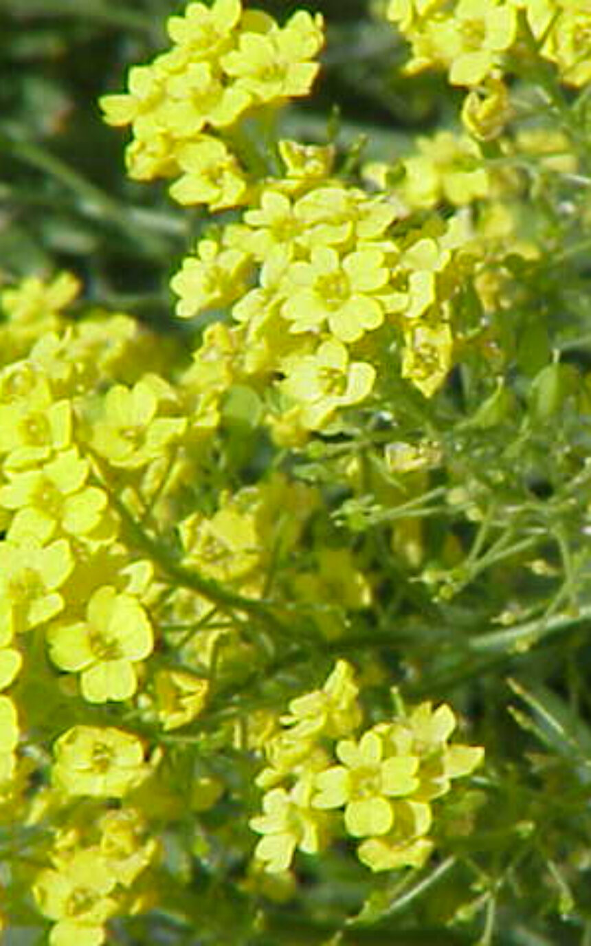Alyssum montanum 'Berggold', in het nederlands schildzaad of bergschildzaad genoemd is een wintergroene vaste plant met een tapijtvormende, breed gespreide habitus. De bladeren zijn grijsgroen, langwerpig tot eivormig, schildzaad bloeit van in april tot juni met naar honing geurende goudgele bloempjes in bijna perfect ronde rozetten. Alyssum montanum 'Berggold' houdt van een standplaats in volle zon en prefereert een kalkhoudende, goed doorlaatbare bodem. Deze plant is goed winterhard, vraagt weinig onderhoud, is zeer goed droogtetolerant en doet het ook goed als kustplant.
