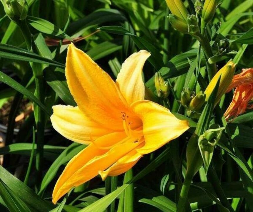 Hemerocallis 'Chicago Sunrise' is een semi-wintergroene tot wintergroene vaste plant met een polvormende habitus. Deze daglelie heeft smalle heldergroene zwaardvormige bladeren en bloeit in juli en september met sterk geurende, grote gele tot oranjegele, trompetvormige bloemen met een diameter tot 15 cm. Deze hemerocallis houdt van een standplaats in volle zon of halfschaduw en stelt een goed doorlaatbare, vruchtbare bodem met een neutrale ph op prijs. Tijdens het bloeiseizoen dienen de dagelijks uitgebloeide bloemen verwijderd te worden en gele bladen mogen afgerukt worden. Hemerocallis 'Chicago Sunrise' is goed winterhard, matig droogte verdragend, zeewind en luchtvervuiling tolerant en toepasbaar in borders, informele tuinen en prairietuin.